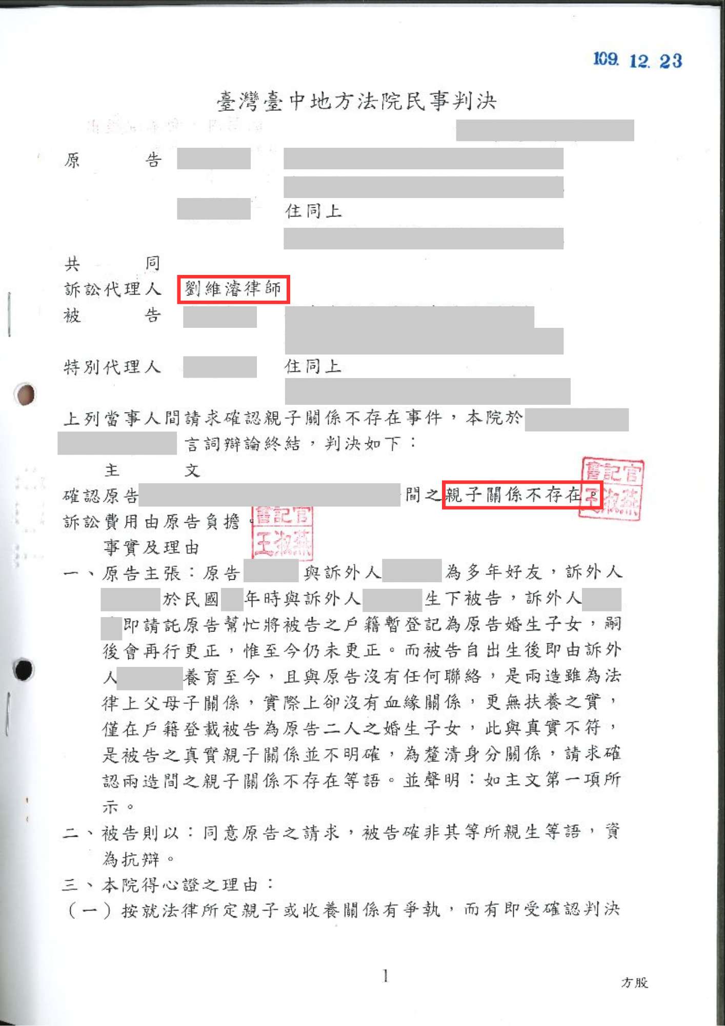 法院裁定親子關係不存在
