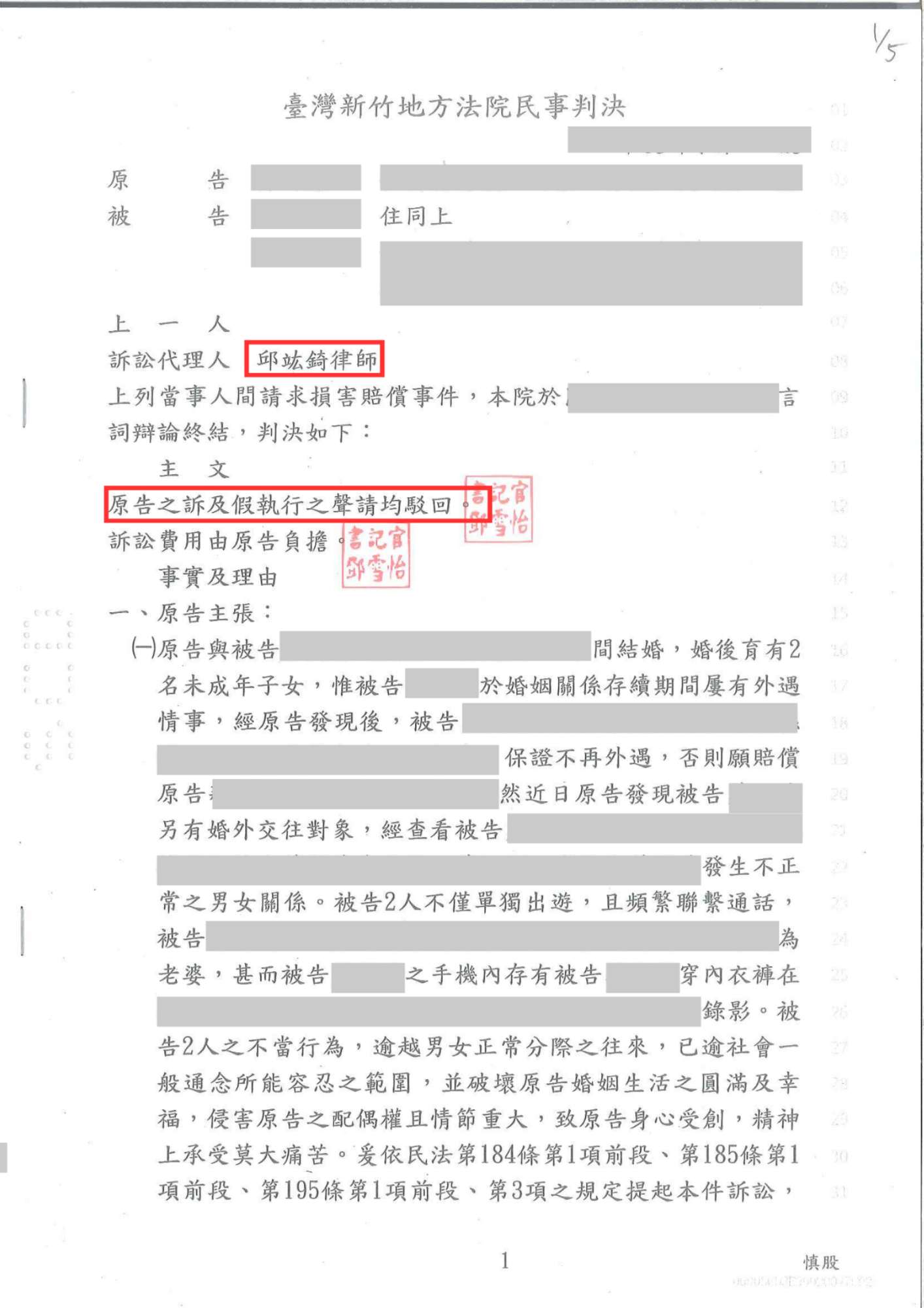 法院是保障良善人民的最後一道防線,但在上法院前,都是有機會透過專業的協商顧問及專業的民事庭家事律師的協助,先讓雙方取得共識並和解,減少因興訟而衍生的費用,還能爭取到高於法院判決的損害賠償金及剩餘財產分配。