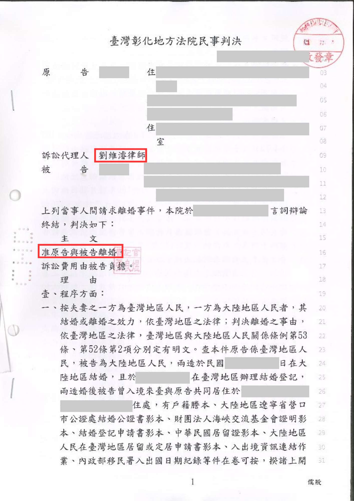 並非所有離婚都能和平協議,當對方拒絕離婚或拖延不配合,透過法院判決離婚是保障你人身自由的重要途徑。 依據《民法》,不忠、遺棄、長期分居等都是可以主張判決離婚的法定事由,但如何舉證、如何陳述,往往決定了案件的成敗。有了專業律師的陪同,能讓你在訴訟過程中少走冤枉路,也能同步處理財產分配、子女監護等附帶問題。 我們協助許多當事人順利完成判決離婚,重新開始屬於自己的人生。