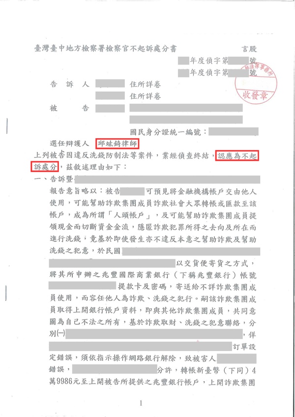 帳戶被借用、名義被掛名——你可能在不知情下成為詐欺共犯。 《刑法》詐欺罪認定涵蓋主謀、車手、人頭等多種角色,即使未實際獲利,仍可能以共同正犯論處,刑責最重可達七年。近年檢察機關積極追訴詐欺集團,連帶涉案者往往面臨龐大壓力。 博策律師協助當事人區分主觀知情與客觀參與程度,為不同角色的涉案者提出具針對性的辯護策略。