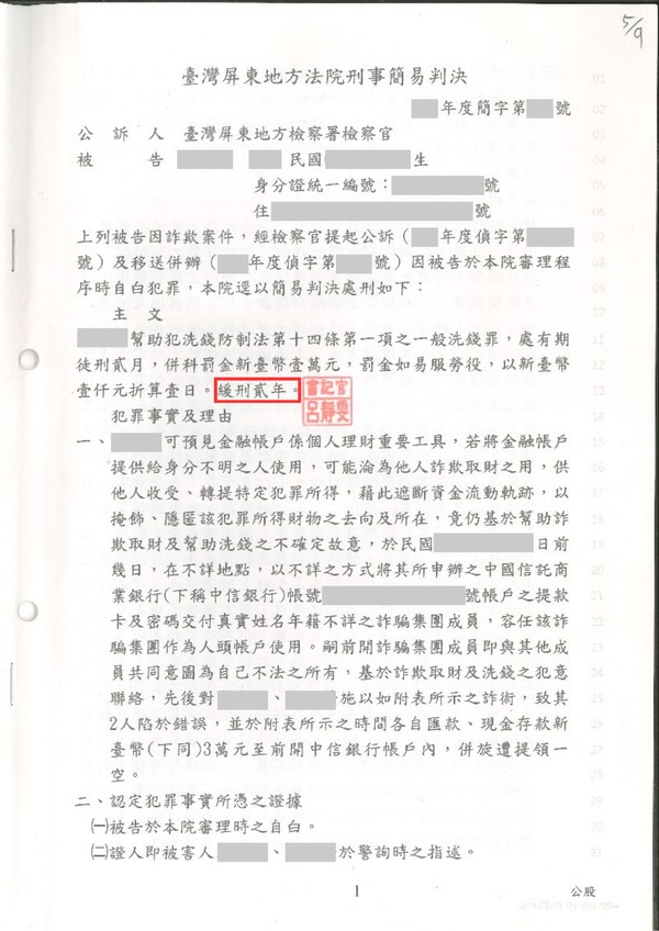 當事人被告詐欺,獲緩刑兩年