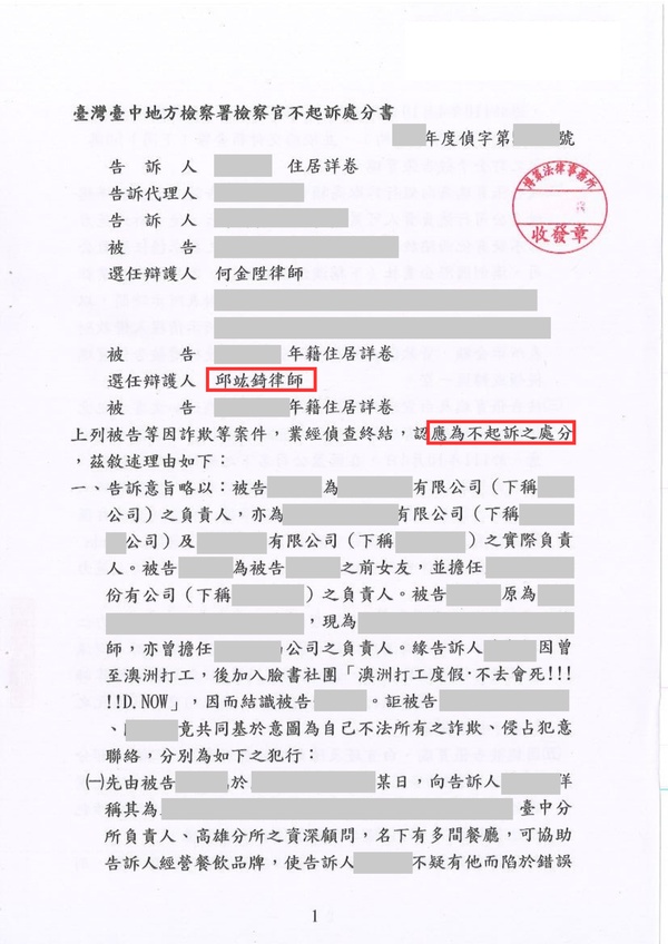 被告詐欺取財獲地檢署不起訴