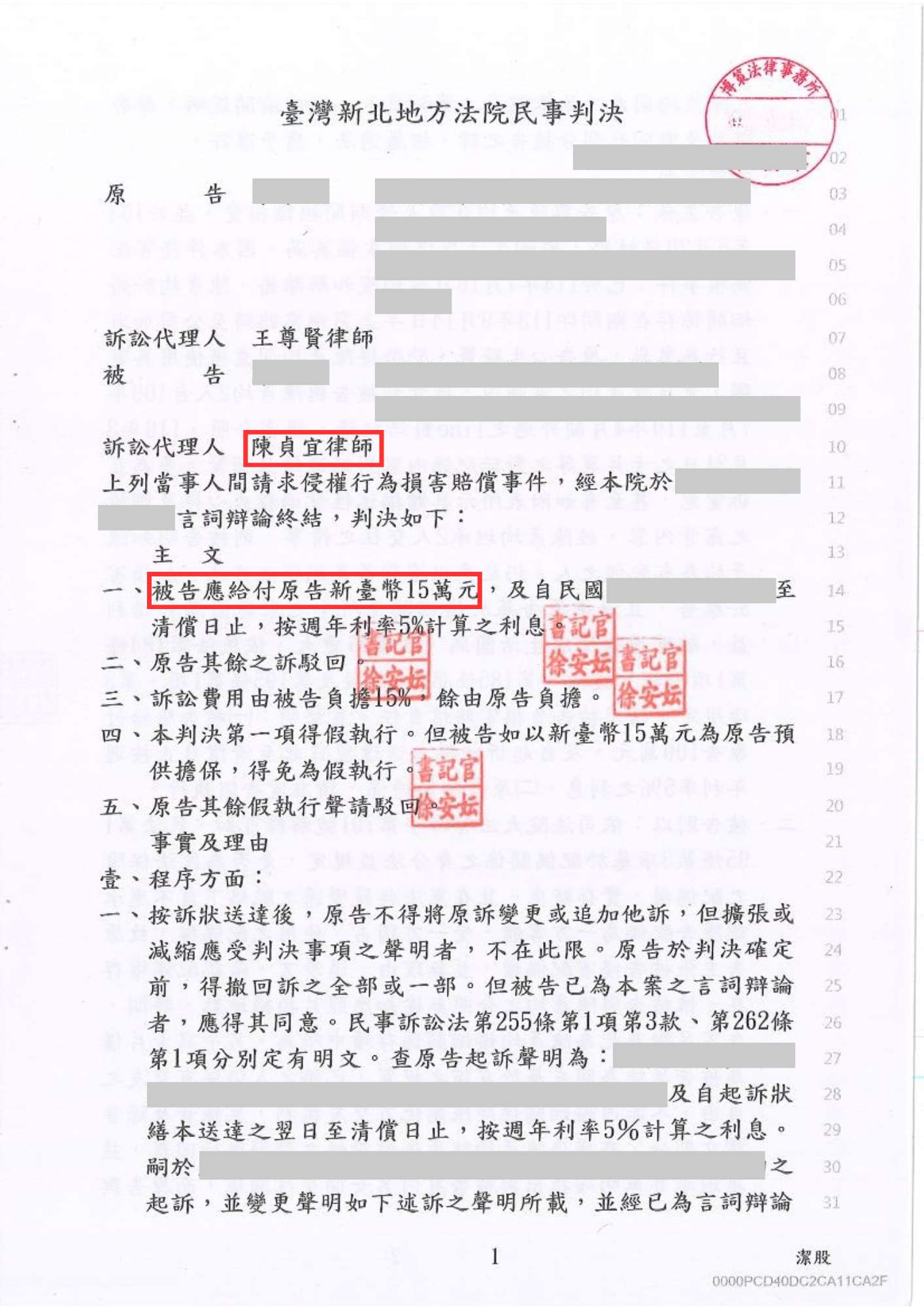 侵害配偶權一審,僅賠15萬元