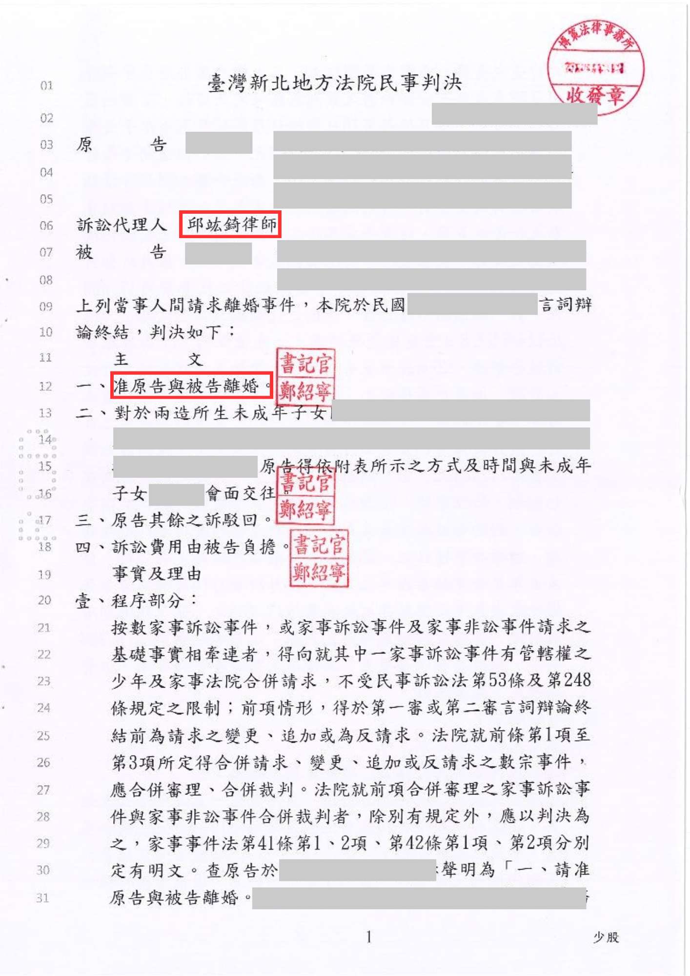 我們協助許多當事人順利完成判決離婚,重新開始屬於自己的人生。