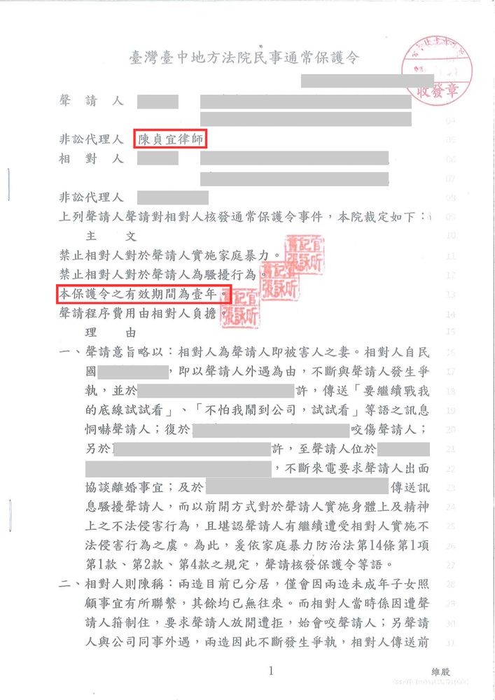 成功協助當事人申請通常保護令