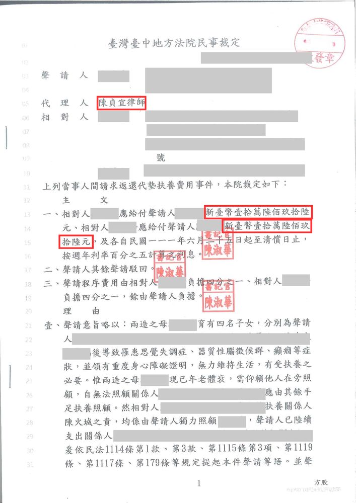 博策法律事務所協助過許多獨力照顧父母的子女,成功透過法律途徑向其他應盡義務的兄弟姊妹追討應分擔的扶養費用,還給付出者應有的公平。
