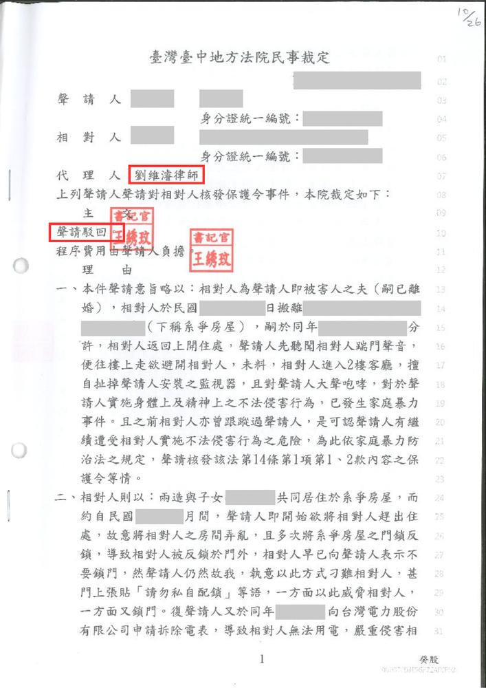 對方保護令聲請遭法院駁回