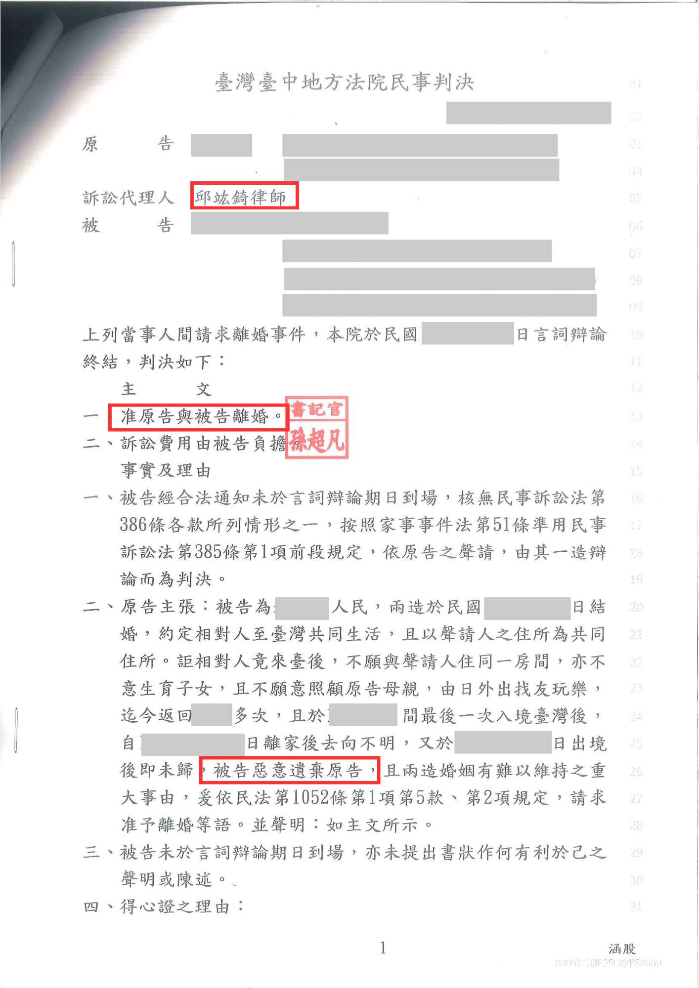 並非所有離婚都能和平協議,當對方拒絕離婚或拖延不配合,透過法院判決離婚是保障你人身自由的重要途徑。